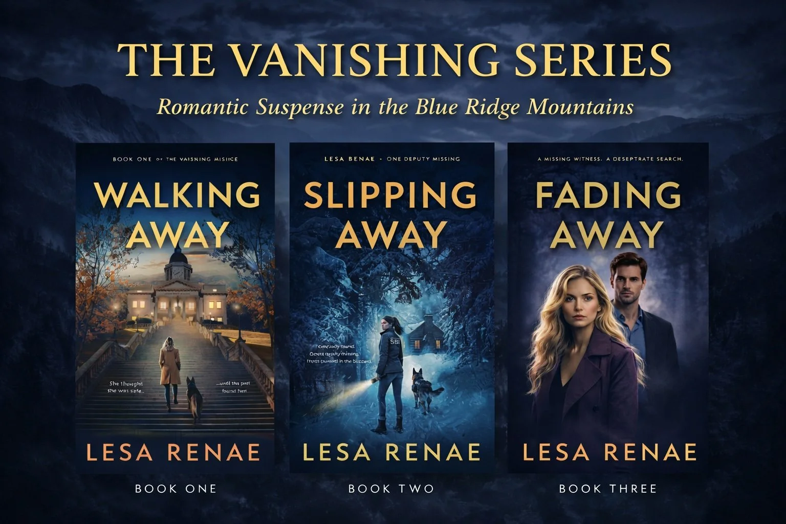 Set against the backdrop of the Blue Ridge Mountains, The Vanishing Series blends small-town secrets, gripping crime investigations, and emotionally driven romance where justice, loyalty, and love are often tested.